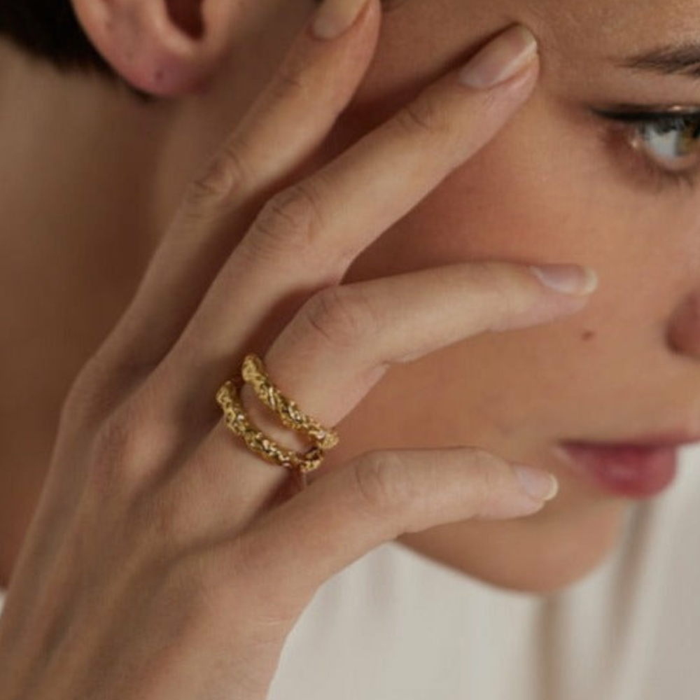 All our pieces are made of hypoallergenic materials, manufactured out of 100% recycled stainless steel base and dipped in high-quality 18k Gold.